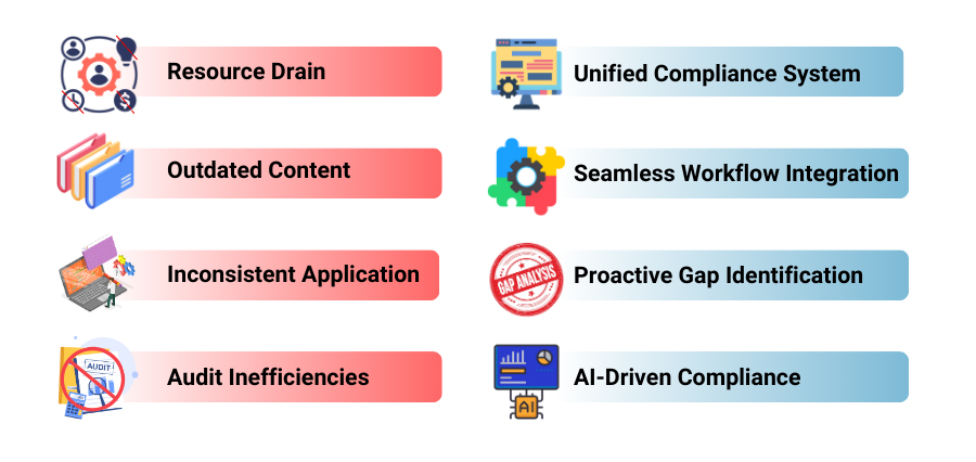 Reactive Risk Management: Traditional systems fail to provide proactive insights into emerging regulatory changes.